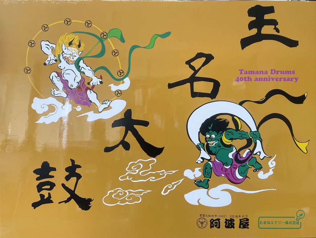 玉名太鼓は和文化を後世に伝えることと、地域の健全な青少年育成のために始められたとのことで、創立40周年の記念に当社からも大太鼓の台座に設置できる看板を作成・提供させていただきました。当日探してみてくださいね!